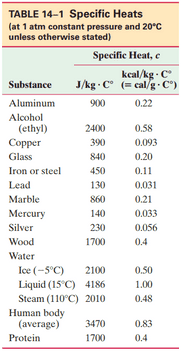 This is Giancoli Answers with Mr. Dychko. Since the heat gained by each material is the same and the change in temperature for each material is the same. When we write the heat equation, Q does not need a subscript and ΔT does not need a subscript because it's the same for each substance. But we will put a subscript on the mass of copper in one case times the specific heat capacity of copper and times mass of aluminum specific heat capacity of aluminum. And we have a subscript water for the mass here and water for the specific heat capacity here. And since each to these things are equal to Q, they're all equal to each other, each these things is equal to each other, and the Δ temperature is going to cancel for each one. So, we can write this line here. And so this says the mass times the heat capacity of each substance is the same. And we'll divide each thing by the material that has the smallest heat capacity to get ratios of masses here. So, this when you divide by the specific capacity of copper you get mass of copper equals mass of aluminum times the specific heat capacity of aluminum divided by that of copper. And then mass of water times that ratio there. And then substituting in 900 joules per kilogram Celsius degree, specific capacity of aluminum divided by that of copper, 390, gives 2.308. And then 4,186, specific heat capacity of water, divided by, 390, capacity for copper, gives 10.73. And so this means the mass of copper is 10.7 times the mass of water. And then if we want to express everything in terms of or as multiples of the mass of water, because this is the smallest mass since it has the highest specific heat capacity. We'll write 10.7 parts copper for every 1 part water. And then the mass of aluminum in terms of the mass of water is going to be 10.73 divided by 2.308 which is 4.65. So, there's 4.65 times as much... The mass of aluminum is 4.65 times out of the mass of water. So, there's 4.65 parts of aluminum for every 1 part water. So, 10.7 to 4.65 to 1 is the mass of copper to the mass of aluminum to the mass of water.