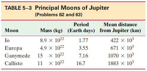 This is Giancoli Answers with Mr. Dychko. The force of gravity on a moon orbiting Jupiter is gonna be g times mass of the Jupiter times mass of the moon divided by the distance to the moon from the center of Jupiter squared. And that force of gravity is the centripetal force so it equals mass of the moon times its acceleration. And I have written acceleration as 4π squared times the orbital radius divided by period squared because normally, it's v squared over r but we can think of v as being the circumference of its orbit divided by the period of an orbit; that's distance over time here. That's the size of the circle divided by the time it takes to do one circle. That's v and then we square that and divide by r and this turns into 4 π squared r over T squared, and that's what I have written here. And we can solve for this mass of Jupiter by dividing both sides by mass of the moon; turns out to be not relevant, it cancels. And then multiply both sides by distance to the moon squared, divide by G and you end up with distance to the moon cubed times 4 π squared divided by period squared and there's also a G down there too. There. So, we have 4 times π squared times 422 times 10 to the 6 meters as the average orbital radius of the moon Io, cube that, divided by 6.67 times 10 to the minus 11 and then times by the orbital period squared and they have to convert that into seconds because you always want meters, kilograms and seconds units in your formula unless you can see that some units are gonna cancel and they don't matter. But, when in doubt, always convert into mks units. So, at 1.77 days times 24 hours per day times 3600 seconds per hour; here's the number of seconds, square that, and you get 1.90 times 10 to the 27 kilograms must be the mass of Jupiter. And then we can use the data from the other moons. We have Europa, Ganymede and Callisto. So, when we use the data from all these other moons, it should be C for Callisto, we get the same result pretty much. We get 1.90 times 10 to the 27; they differ in the higher precision digits but, you know, within the error of our data; within, we have about three significant figures I guess; we see only a small difference here when we use Ganymede. But otherwise, it's pretty consistent that the mass of Jupiter is estimated to be 1.90 times 10 to the 27 kilograms.